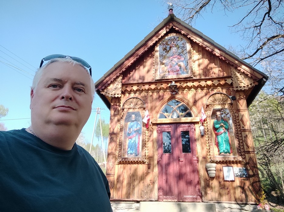 Napis nazwy kaplicy nad drzwiami został wykonany w 2020 r. przez Ewę Bielecką (mamę Aleksandry Trzebuniak).